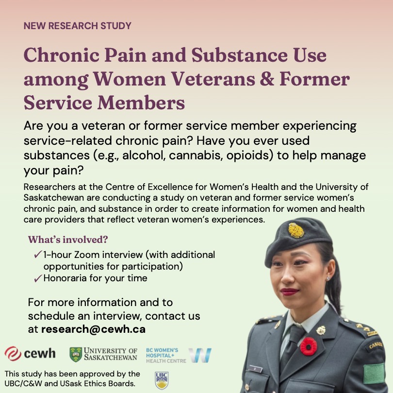 This study is looking to hear from women veteran/former service women who experience chronic pain and have used substances for pain management.